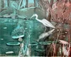 "HERON POND", Monotype with prisma color pencil 16” x 20” unframed 24” x 28” matted and framed $750